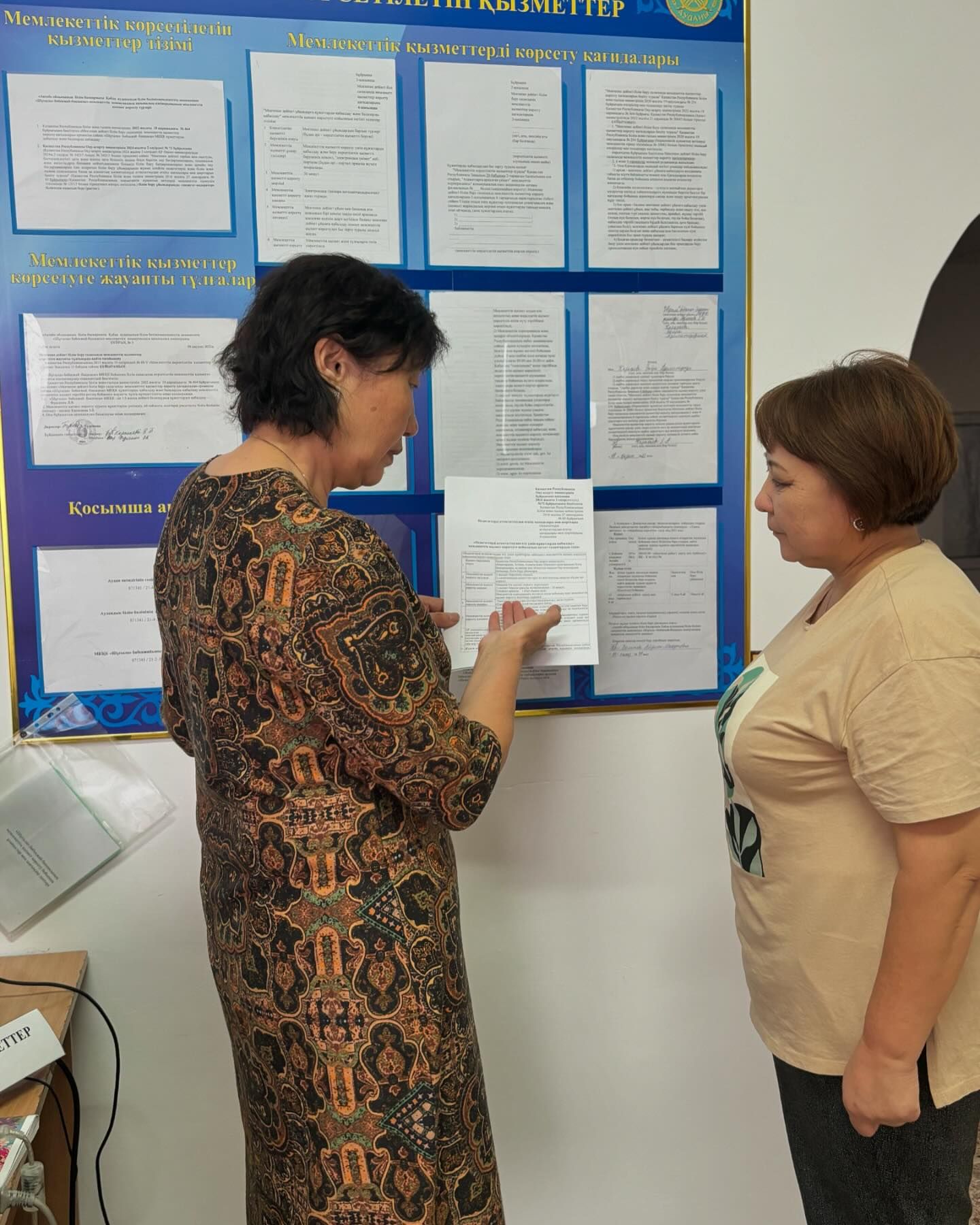 “Шұғыла” бөбекжай-бақшасы МКҚК Мемлекеттік қызмет көрсетілуіне жауапты тұлға: әдіскер: Карасаева З.Б. Бөбекжайға қабылдауға келген ата - анаға Мемлекеттік қызмет көрсету үшін көрсетілетін қызметі алушыдан талап етілетін құжаттар мен мәліметтерін түсіндіруде.