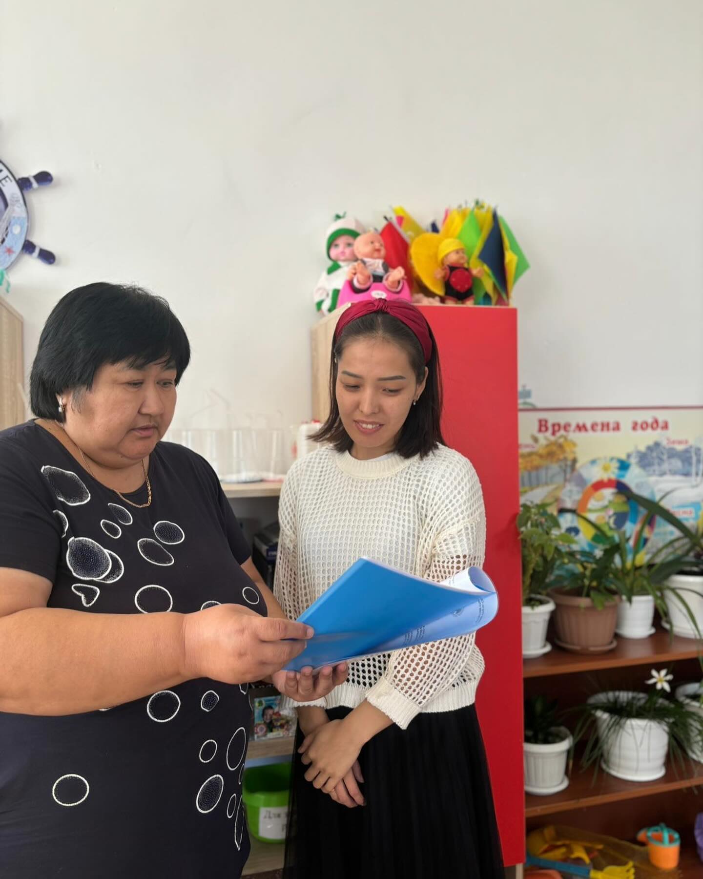 Қазан айындағы жас маманмен жұмыс жоспары бойынша тәлімгер Дариябаеаа С.А. жас тәрбиеші Нығметияр М.Е. Ұйымдастырылған іс-әрекетке дайындыққа кеңес беруде.